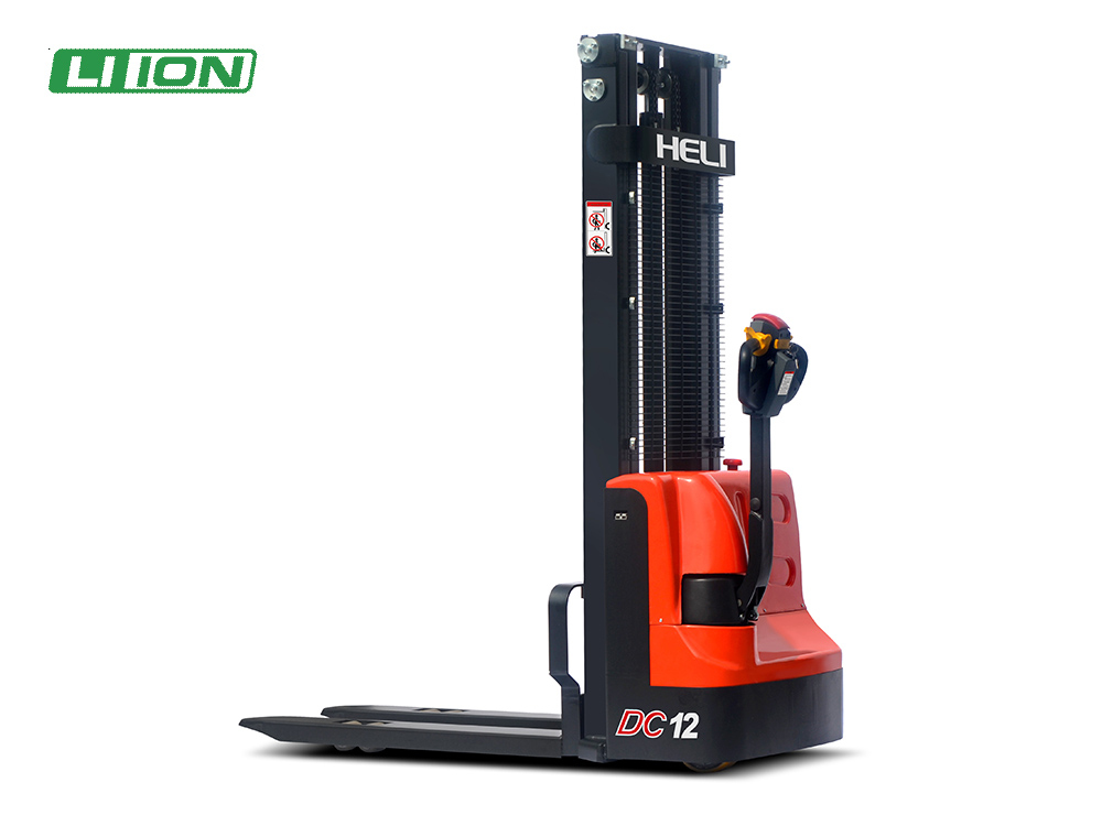 Električni paletni viličar HELI CDD12J s funkcijo dviga je primeren za delo v ozkih skladiščnih hodnikih in omejenih prostorih, kot so kovinski regali. Z nosilnostjo 1.200 kg in višino dviga do 3.500 mm je primeren za transport in dvig palet na več nivojih, pri čemer ohranja stabilnost in preglednost.
